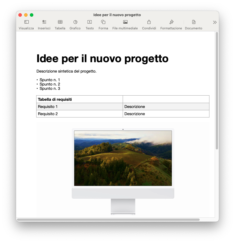 Ora non ci resta che salvare il documento. Come nome del file preimpostato, Pages proporrà il titolo della nota, ma naturalmente possiamo personalizzarlo a nostro piacimento.