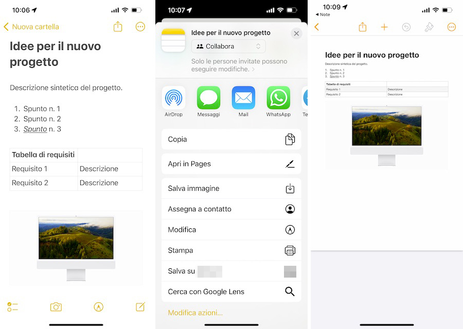 Come per la stessa operazione sul Mac, la formattazione e molti contenuti vengono mantenuti, alcuni elementi potrebbero però avere delle limitazioni una volta esportati in Pages. E, anche qui, il nome del documento corrisponderà al titolo della nota, ma possiamo personalizzarlo.