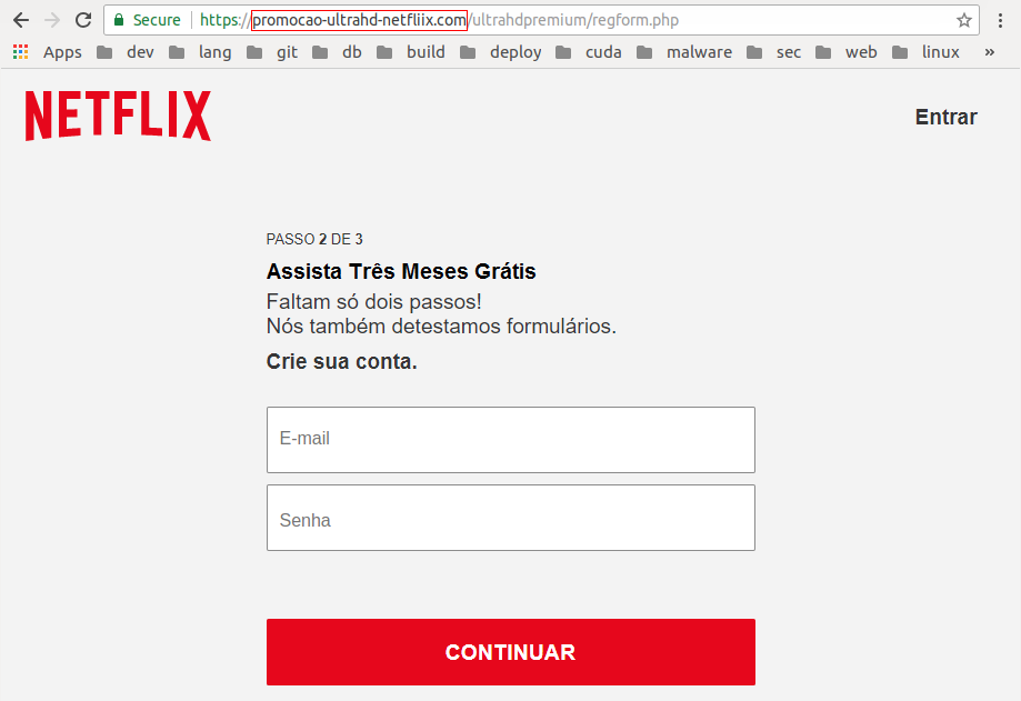 I criminali vogliono che il messaggio appaia come proveniente da Netflix ma, se si osserva bene l’URL, si nota che Netflix è in effetti scritto in modo errato. Questa tecnica viene definita typosquatting e viene spesso usata per raggirare l’utente quando si vuole che clicchi su un link