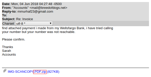 Qui criminali cercano di convincere l’utente ad aprire un allegato spingendolo a credere si tratti di una questione urgente. Affinché il malware faccia il suo lavoro, l’utente deve installare del software sul suo pc. Il malware può essere distribuito in diverse forme: virus, worm, bot, ransomware, password stealer e così via. Va notato che se l’utente ha ricevuto una qualche formazione sulla sicurezza delle mail, la probabilità che possa essere vittima di questi attacchi diminuisce sensibilmente.