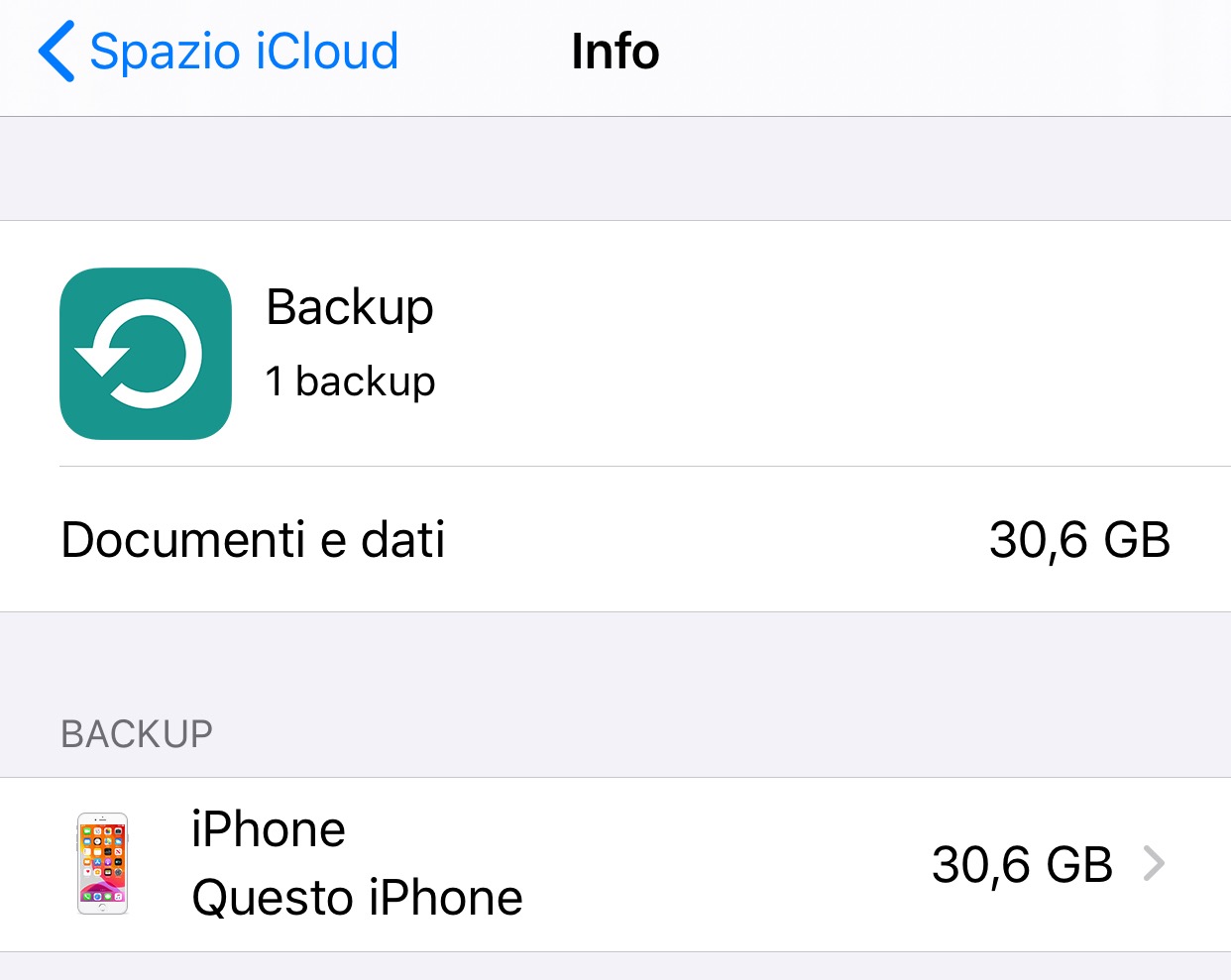 Puoi controllare il tuo spazio iCloud e come viene utilizzato, nonché gestirlo, in Impostazioni > (Il tuo nome) > iCloud. iOS offre una visualizzazione anche grafica dello spazio disponibile e di quello già utilizzato, con la suddivisione per categorie di documenti. Una delle voci è, per l’appunto, Backup, se questo viene effettuato su iCloud.