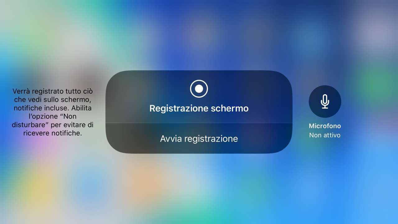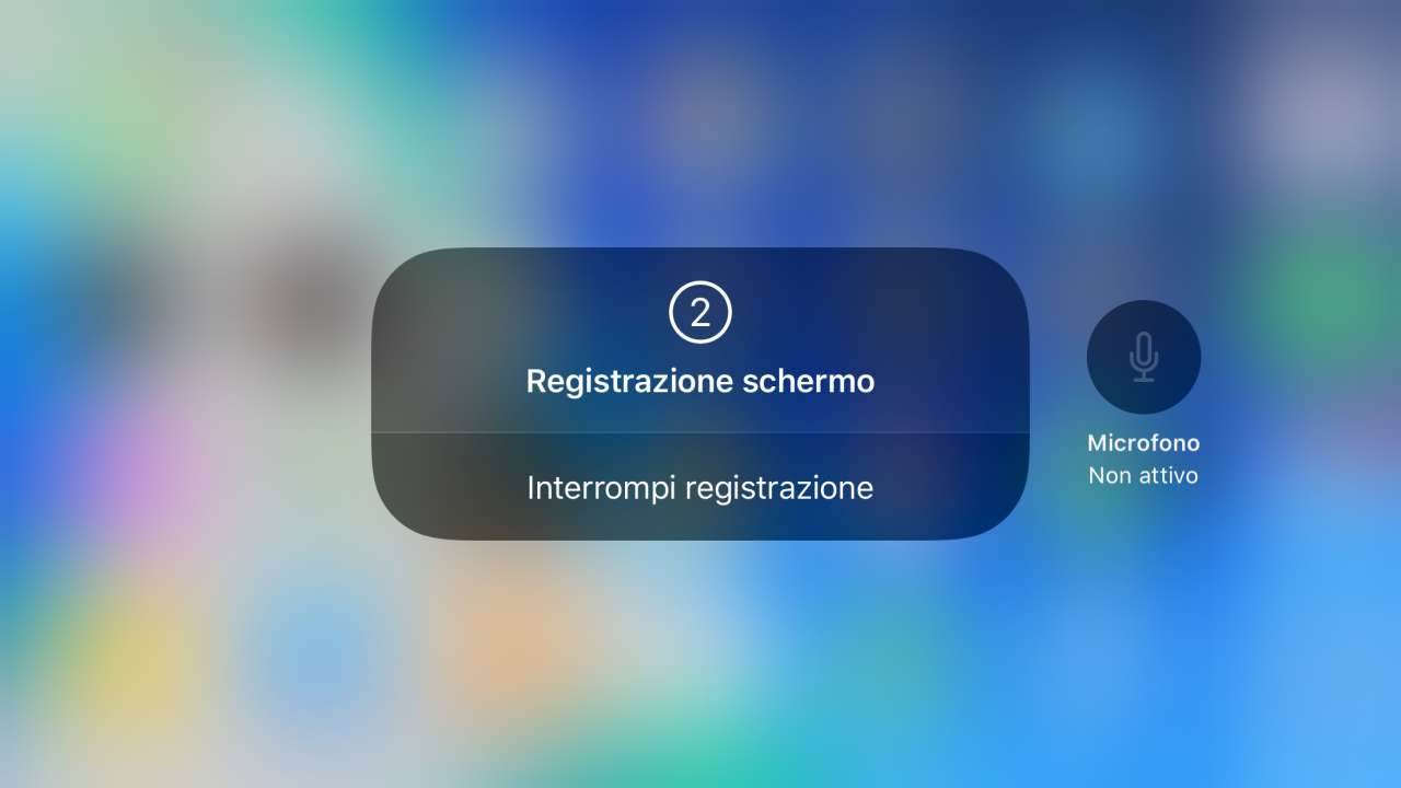 Per avviare la registrazione, puoi anche fare un semplice tocco sull’icona di Registrazione schermo nel Centro di Controllo, invece del tocco prolungato: in questo caso non viene visualizzata l’opzione del microfono e la registrazione parte direttamente (sempre dopo il conto alla rovescia) con le ultime impostazioni utilizzate o applicate.