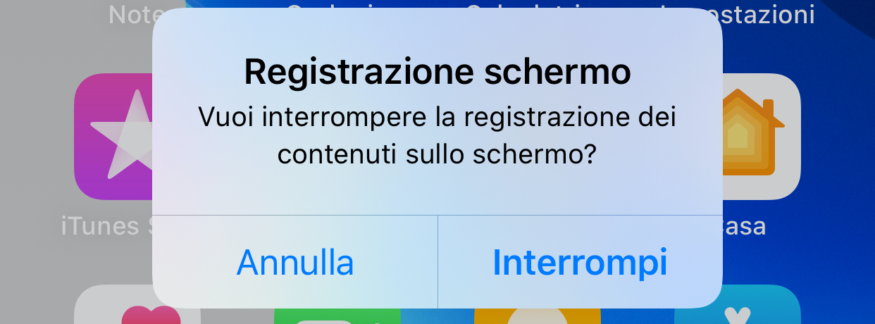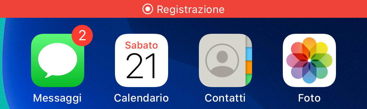 Durante la registrazione, la barra di stato nella parte superiore della schermata di iPhone (o parte di essa, su iPad), diventa rossa: per interrompere la registrazione tocca la barra superiore rossa e poi su Interrompi nel successivo avviso.