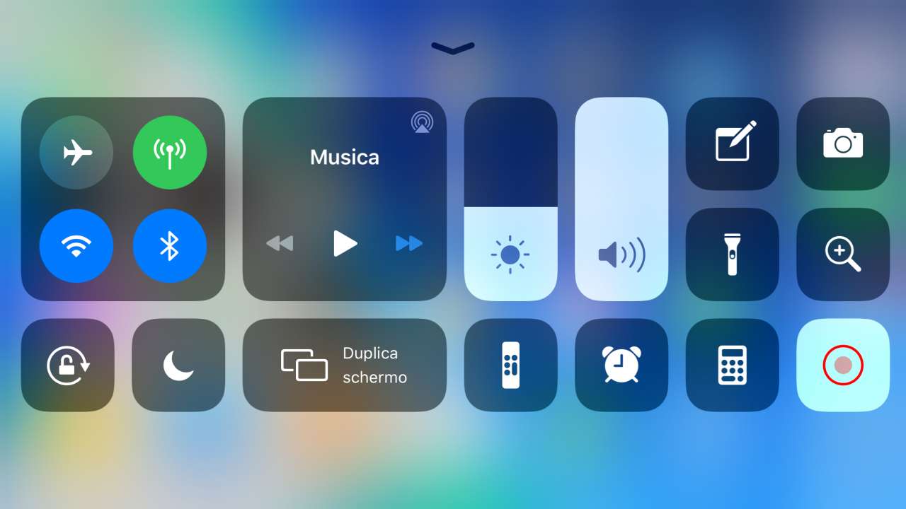 Apparirà il Centro di Controllo: qui, tocca e tieni premuto sull’icona di Registrazione schermo.