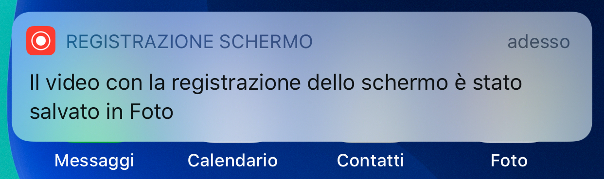 iOS, o iPadOS, visualizza una notifica per avvisare che la registrazione video dello schermo è stata archiviata nella libreria di Foto: tocca la notifica per vedere il video, o puoi anche accedervi in un secondo momento, in Foto.