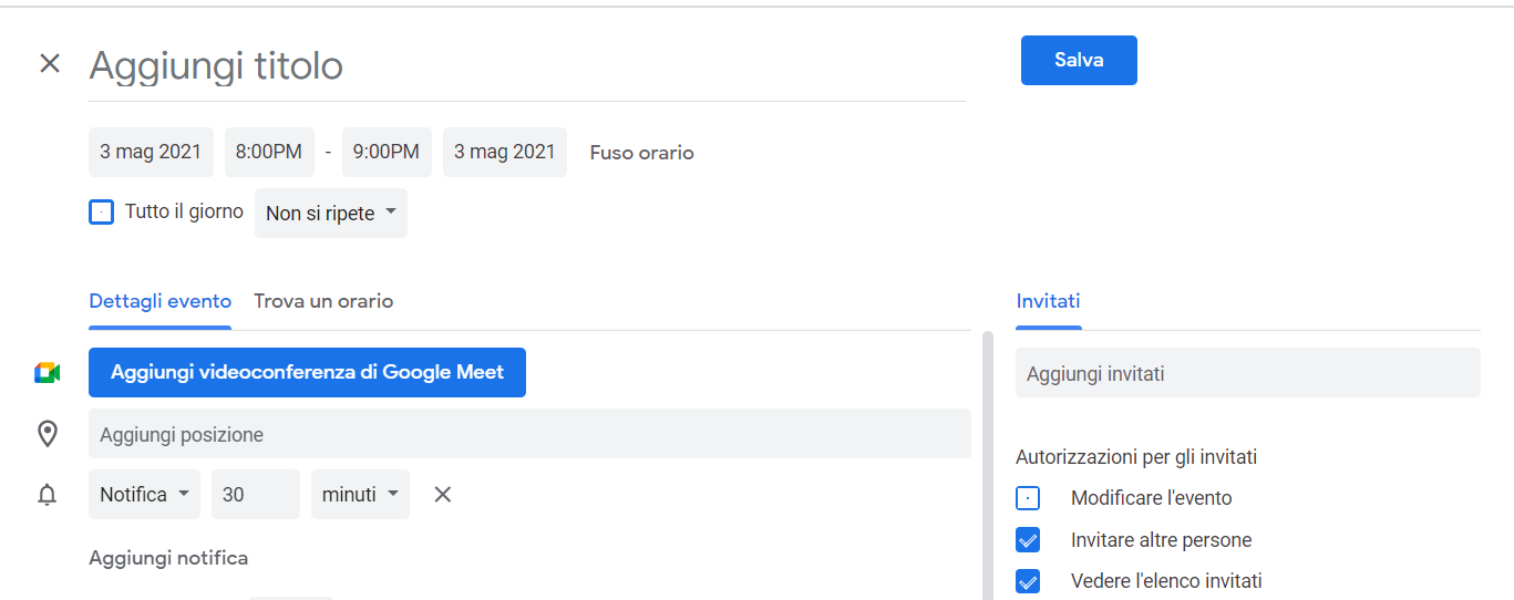 Vediamo come farlo in Google Calendar per web.