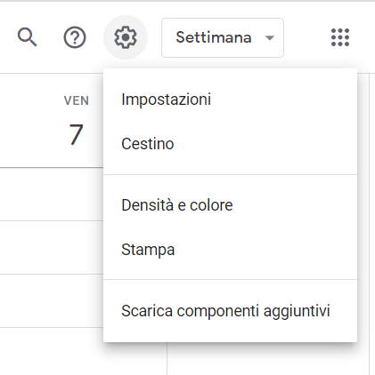 In Google Calendar, fai clic sull’icona delle Impostazioni (quella a forma di ingranaggio in alto a destra) e poi su Impostazioni.