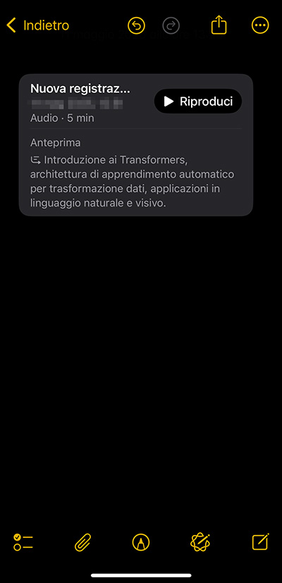 Facciamo un ulteriore passo indietro per mettere in evidenza un’altra opzione dell’app Note di iPhone relativa alle trascrizioni delle registrazioni audio.