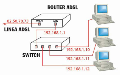 switch, la soluzione più semplice è installare un router ADSL, che incorpora