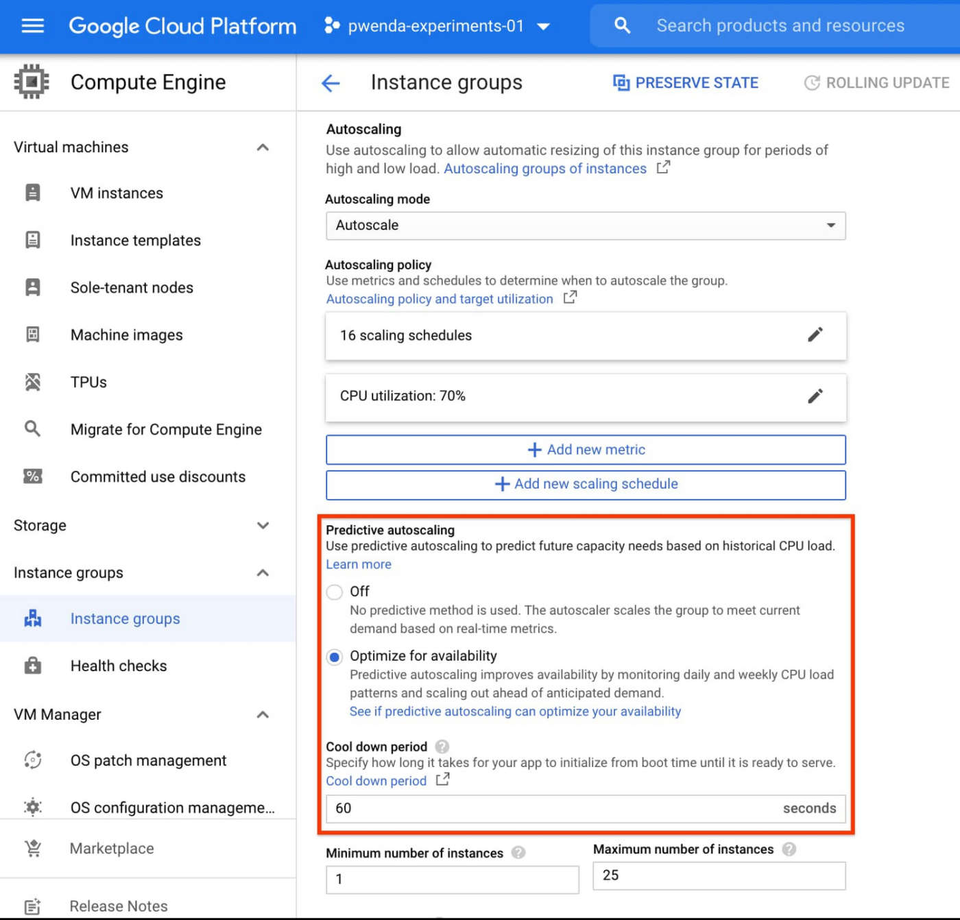 L’opzione predictive autoscaling è generalmente disponibile in tutte le region di Google Cloud e i clienti possono abilitarla nella Console.
