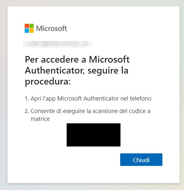 La procedura, come passaggio successivo, visualizza un codice da inquadrare nell’app Microsoft Authenticator.