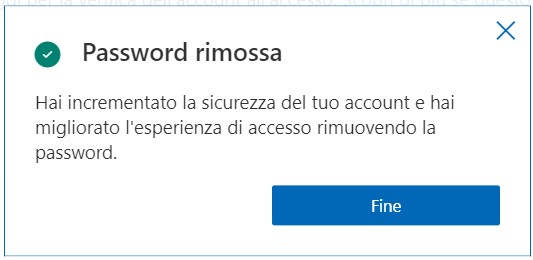 Una volta autorizzata l’operazione nell’app Microsoft Authenticator, la password viene definitivamente rimossa dal nostro account Microsoft.
