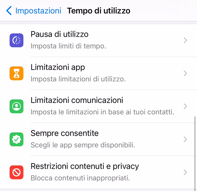 Per impostare un limite di utilizzo giornaliero a una categoria di app su iPhone, procedi come descritto di seguito, ma, prima di andare avanti, fai attenzione a questo avviso: il nostro esempio non prevede l’uso di un codice segreto per “blindare” il Tempo di utilizzo, né dell’opzione In famiglia dell’ecosistema Apple, funzioni utili per limitare l’uso dei dispositivi ad esempio ai ragazzi.