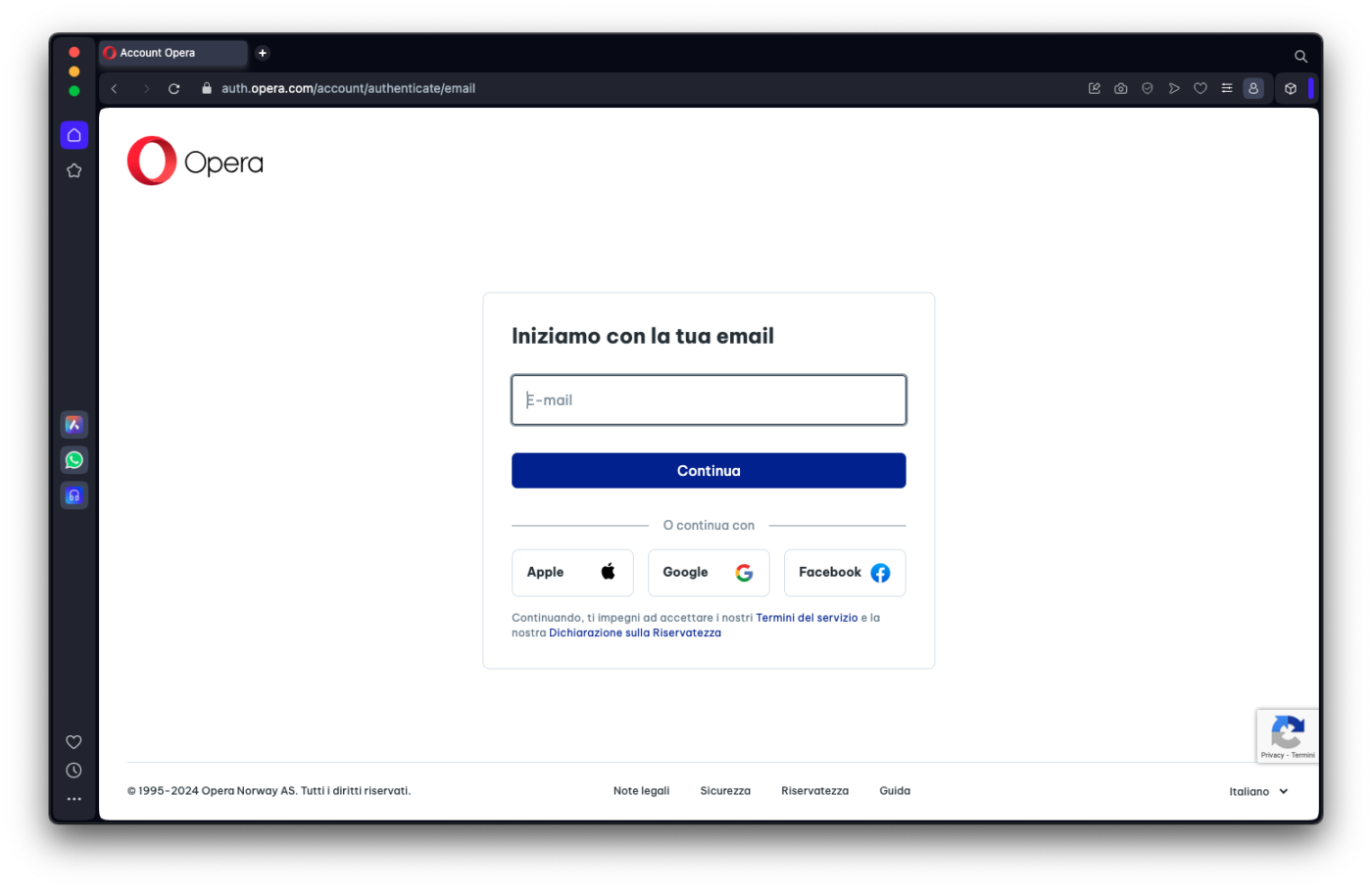 Per avviare una chat con Aria per prima cosa è necessario avere eseguito l’accesso con il proprio account Opera. Se non abbiamo effettuato il login, il browser ci chiederà di autenticarci o, se non abbiamo un account, di creare un account.