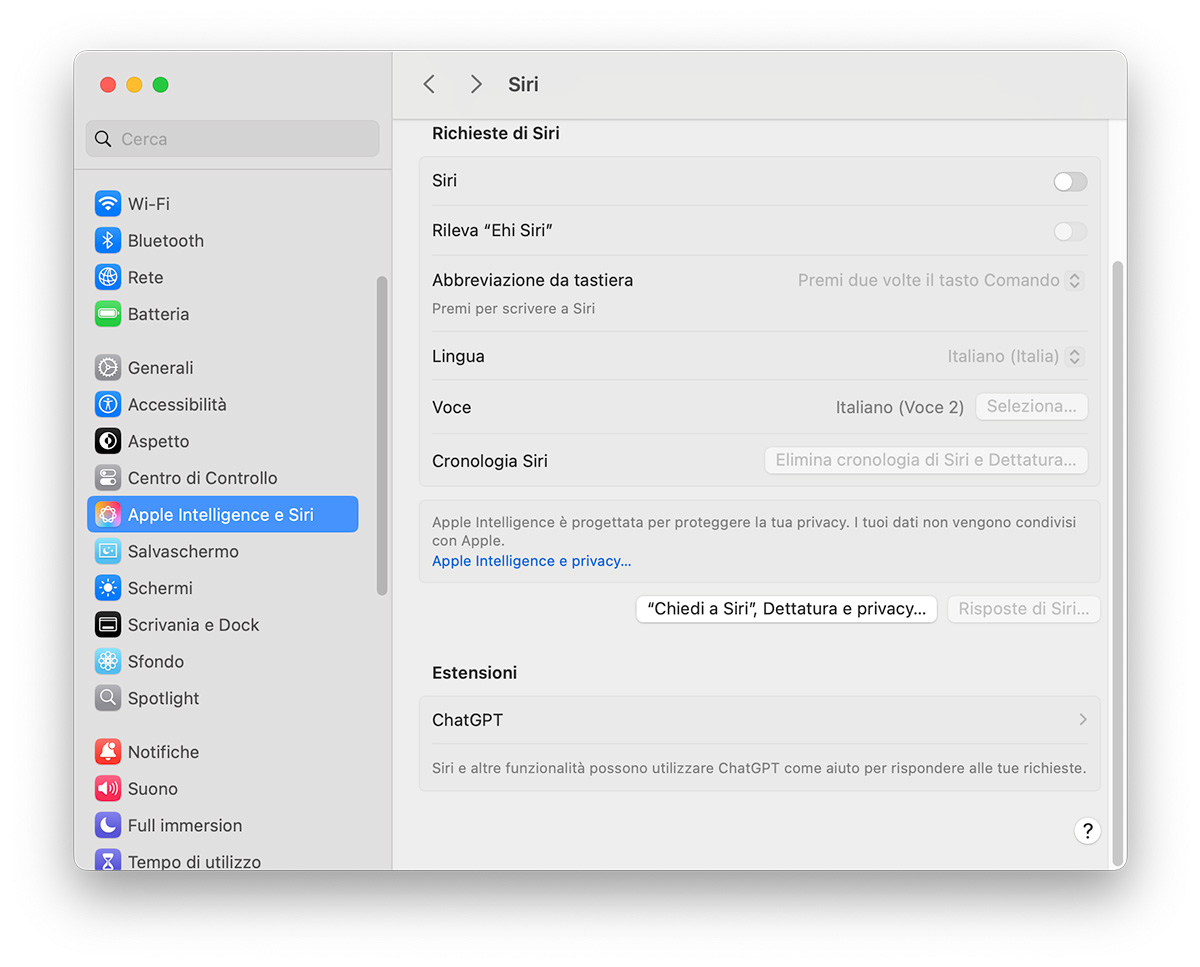 Configurare ChatGPT per Apple Intelligence sul Mac