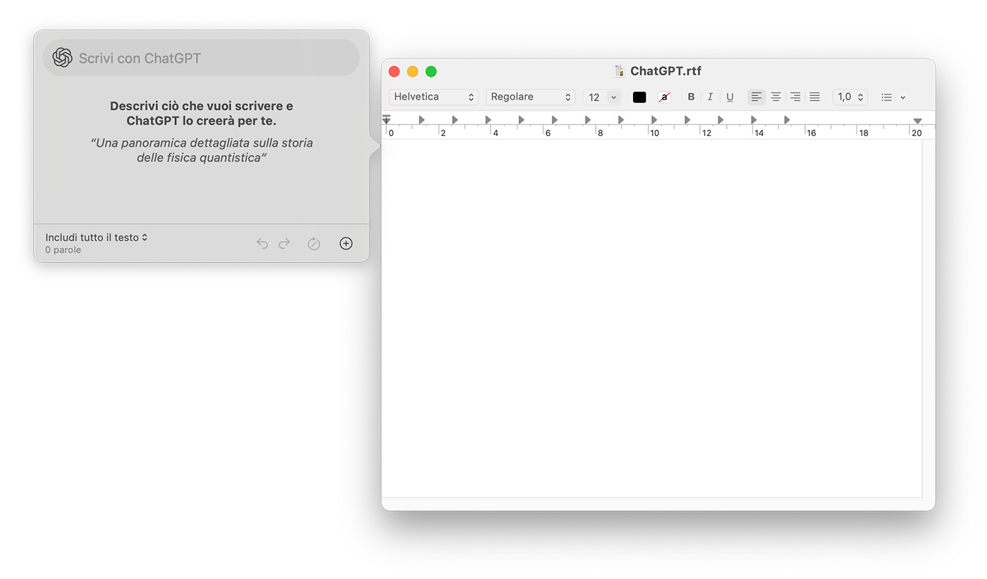 In questo articolo vogliamo esplorare l’utilizzo di ChatGPT con gli Strumenti di scrittura sul Mac per scrivere e rielaborare un testo (e non solo, come vedremo) in un’applicazione per macOS.