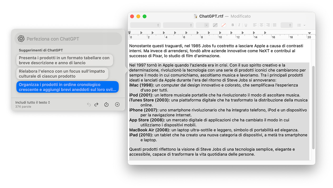Utilizzare ChatGPT con gli Strumenti di scrittura sul Mac