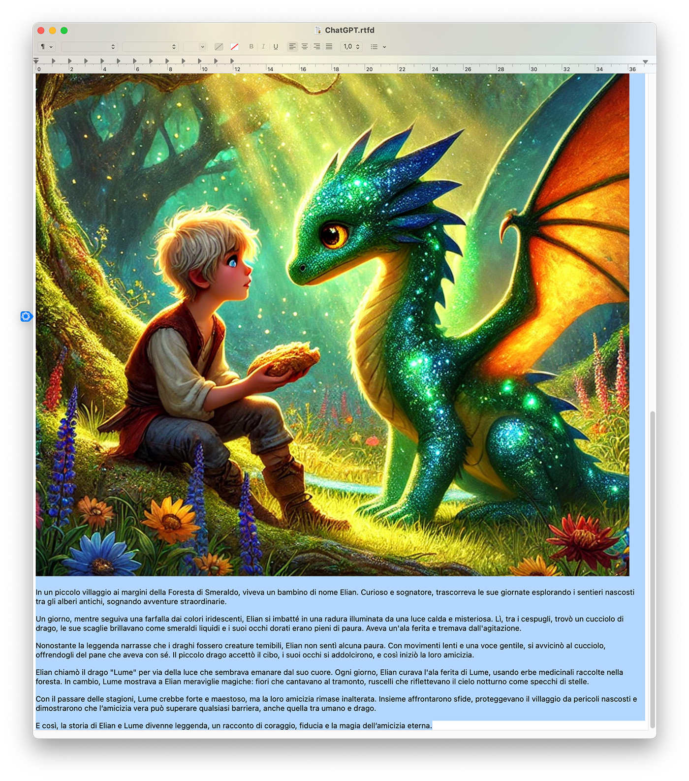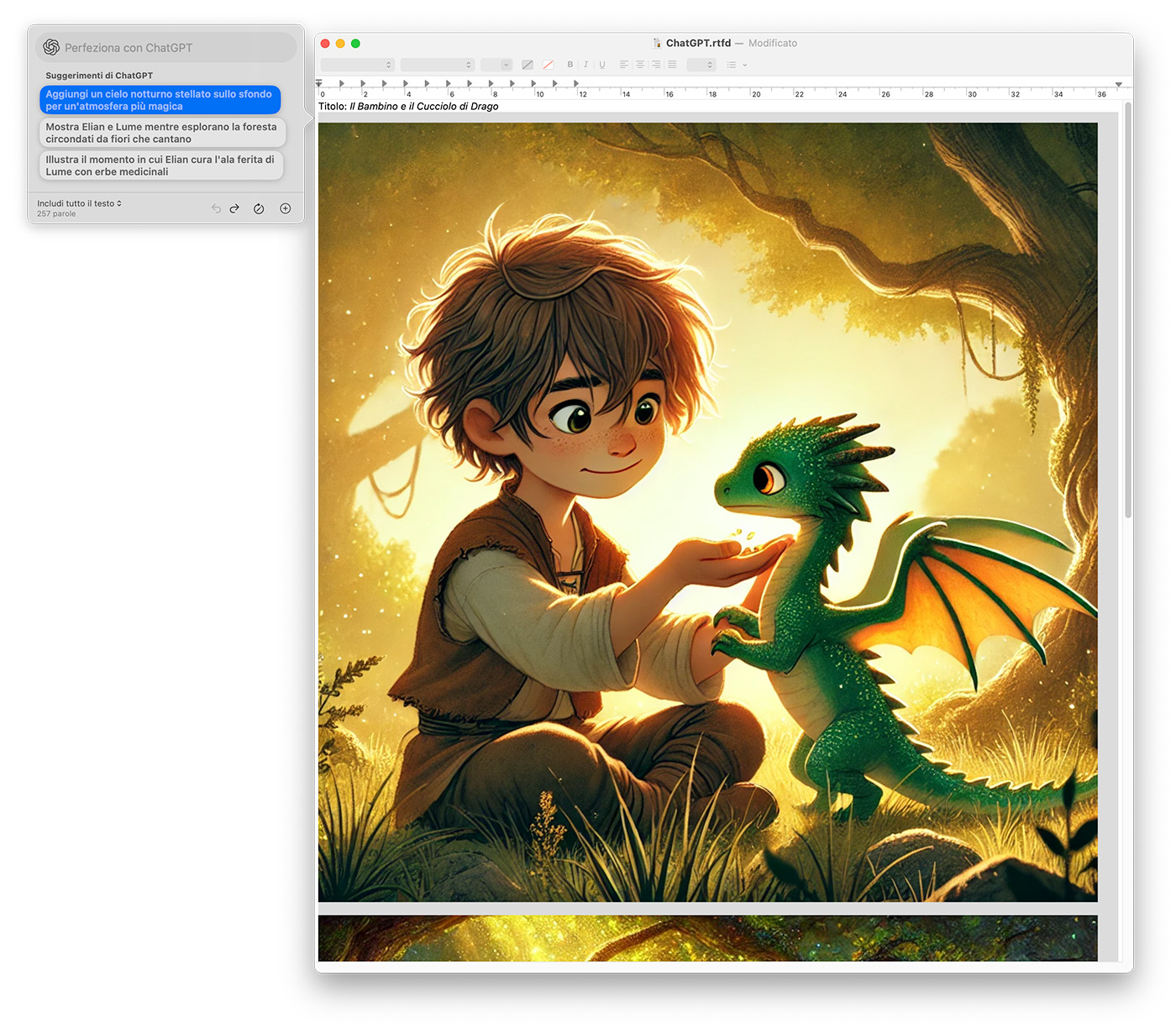 Non siamo limitati al testo: grazie all’integrazione con gli Strumenti di scrittura di Apple Intelligence sul Mac, possiamo chiedere a ChatGPT anche di creare e inserire immagini.