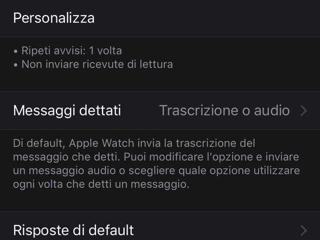 La prima cosa da fare è lanciare l’app Watch su iPhone per modificare le impostazioni di default per Messaggi su Apple Watch. Di norma, infatti, Watch cerca di convertire il parlato in una trascrizione che invia come messaggio di testo puro.