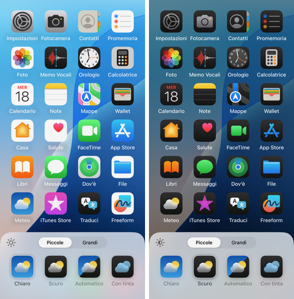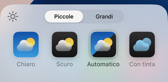 Oppure, possiamo selezionare l’opzione Automatico, che adatterà il look chiaro o scuro delle icone sulla base dell’impostazione della modalità chiara o scura dell’intero sistema operativo di iPhone.