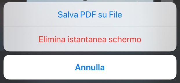 • Per registrare lo screenshot in una posizione che ti risulta comoda, tocca Salva PDF su File e seleziona una destinazione dove salvare il Pdf.