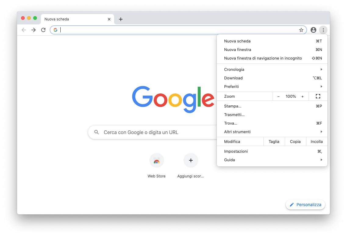 Per prima cosa, accedi alle impostazioni di Google Chrome in uno dei seguenti modi: