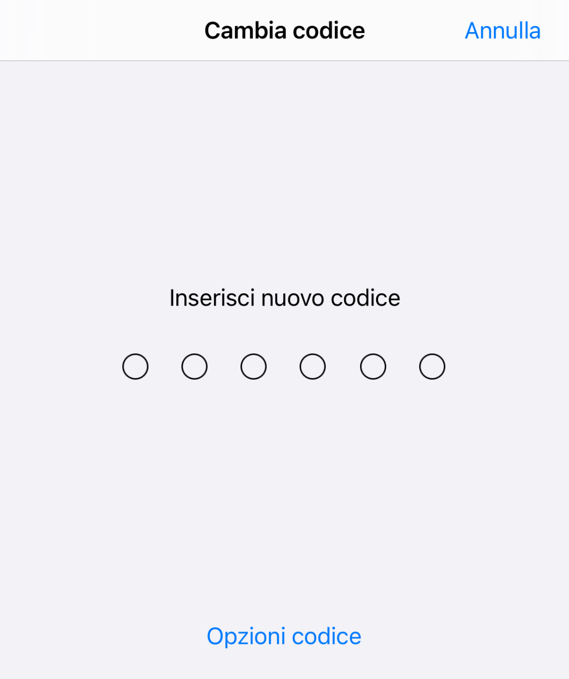 iPhone chiede di inserire il vecchio codice: nella schermata Cambia codice successiva, per cambiare anche il tipo di codice tocca su Opzioni codice.