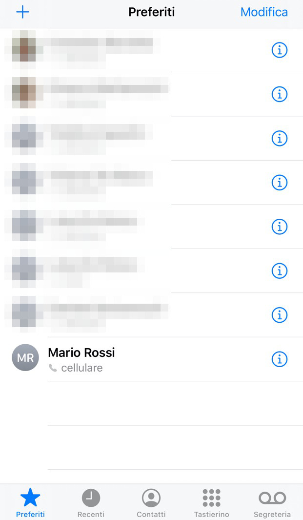 Nella schermata Preferiti dell’app Telefono di iPhone abbiamo invece i contatti più importanti sempre direttamente a portata di dito, per chiamare velocemente le persone con le quali comunichiamo più di frequente.