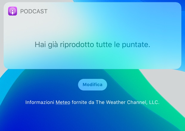 La vista Oggi mostra una serie di widget: a seconda di quali siano quelli selezionati, potresti vedere il Meteo, i prossimi eventi del Calendario e altro ancora.