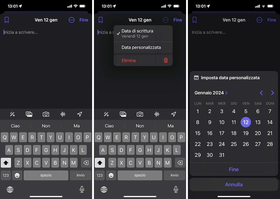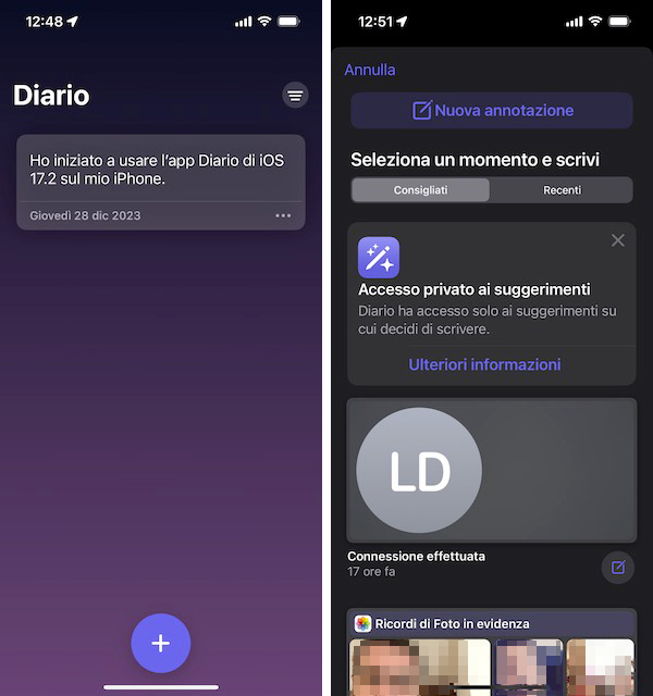 L’app Diario di iOS 17 apre un’annotazione nuova che possiamo iniziare a comporre.