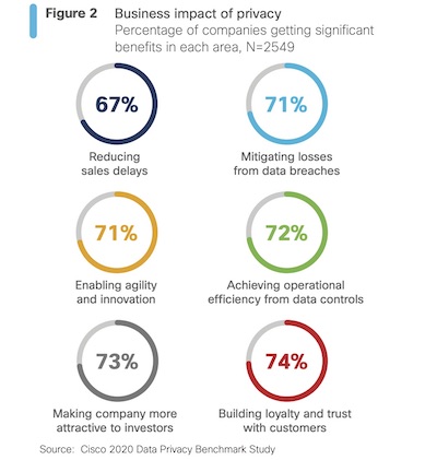 Oltre che per motivi di compliance e di tutela dei propri utenti, Cisco suggerisce che le politiche di rafforzamento della protezione dei dati possono diventare un’opportunità di business per le imprese.