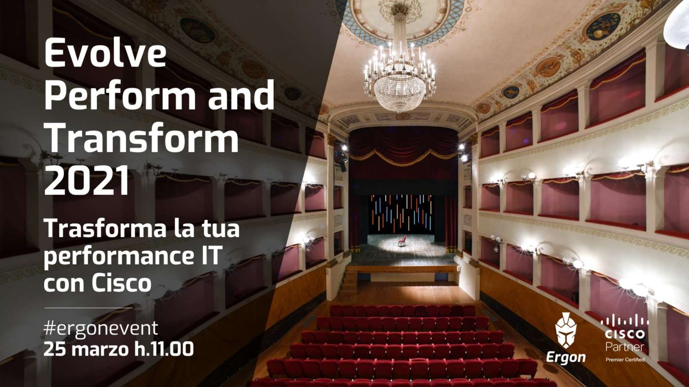 Assisti all’evento di Ergon, “Evolve, Perform and Transform 2021” per scoprire tutte le novità Cisco in tema di approccio, collaboration e security.