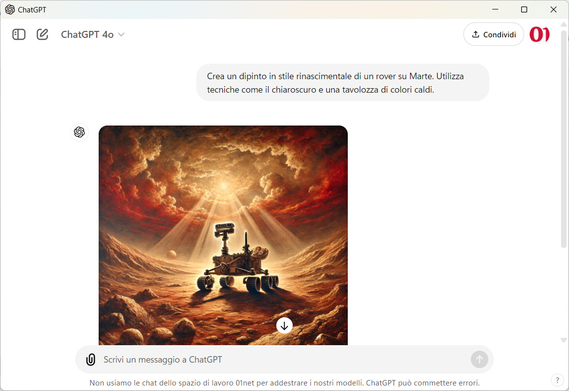 Possiamo anche generare immagini e caricare file dal computer locale, ad esempio per chiedere di fornirci una sintesi o per ottenere la traduzione di un documento.