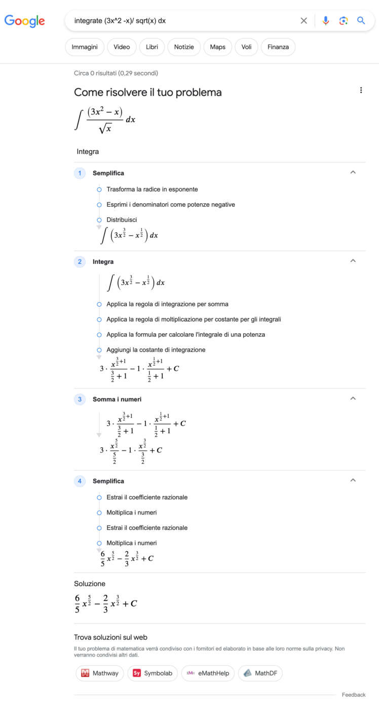Problemi complessi, come il calcolo di integrali indefiniti, sono risolti allo stesso modo.