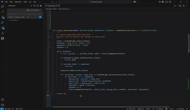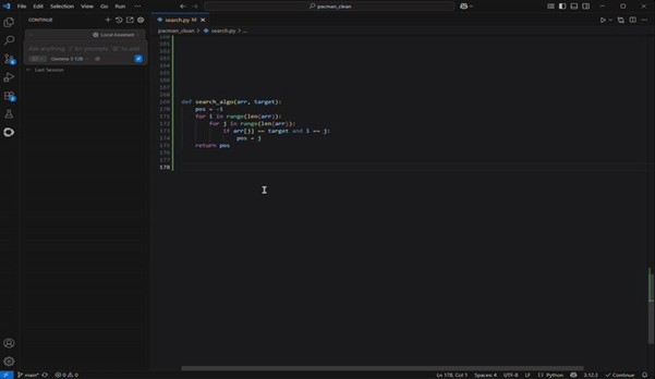 Eseguito su un PC con tecnologia GeForce RTX, Continue.dev abbinato al Gemma 12B Code LLM aiuta a spiegare codice esistente, esplorare algoritmi di ricerca e risolvere problemi, il tutto direttamente sul dispositivo. Come un assistente didattico virtuale, fornisce spiegazioni in linguaggio semplice, commenti contestualizzati, suggerimenti in linea e indicazioni per migliorare il codice in base al progetto su cui stai lavorando.
