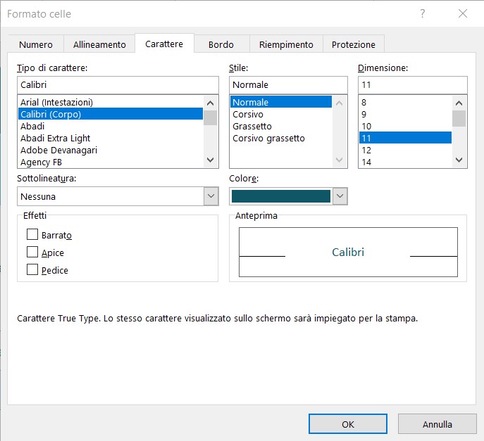 Nelle varie schede della finestra Formato celle seleziona le caratteristiche di formattazione: tipo e dimensione del carattere, allineamento, bordi, colore di riempimento e così via. Quando sei pronto con la scelta della formattazione, fai clic su OK.