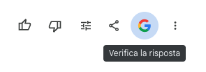 Dopo aver inviato il prompt e aver ricevuto la risposta, nella barra dei pulsanti, sotto la risposta di Google Gemini, è presente l’icona della Ricerca Google.