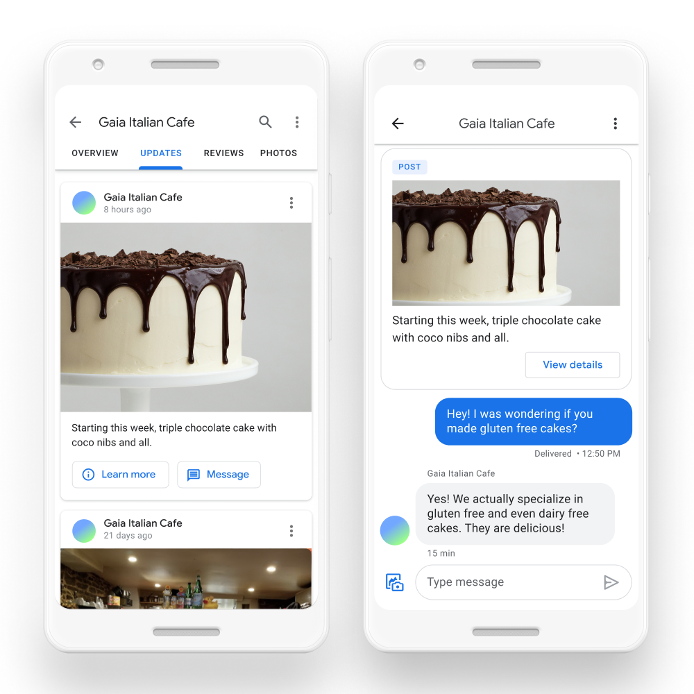Per rendere ancora più facile per i clienti ottenere le informazioni che desiderano dalle aziende, Google sta implementando ulteriori modi in cui le persone possono entrare in contatto, ad esempio iniziando una conversazione da qualsiasi post. E se i clienti provano a chiamare e l’azienda non risponde, verrà loro richiesto di inviare un messaggio.
