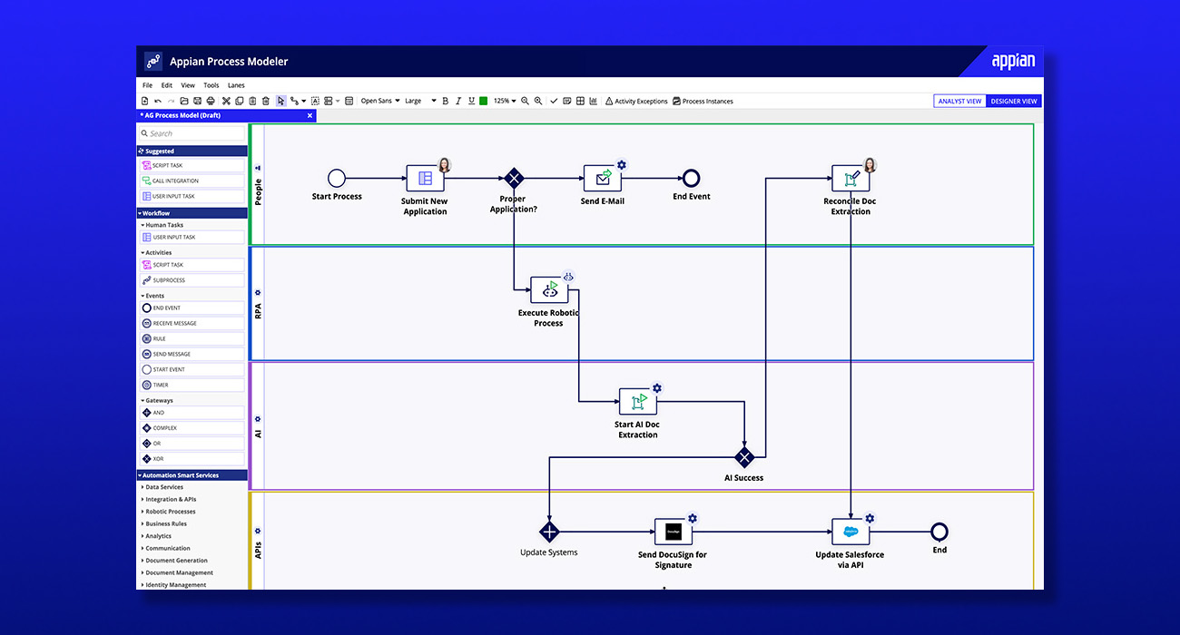 Appian AI Skill Designer è uno strumento semplice ed efficace per le organizzazioni che desiderano creare modelli di apprendimento automatico AI personalizzati. Ciò consente di sviluppare soluzioni di intelligenza artificiale uniche e su misura per l’azienda, senza la necessità di competenze specifiche di data science. Nella versione iniziale, Appian AI Skill Designer si concentra sull’automazione delle comunicazioni via e-mail, sulla classificazione e sull’estrazione dei documenti.