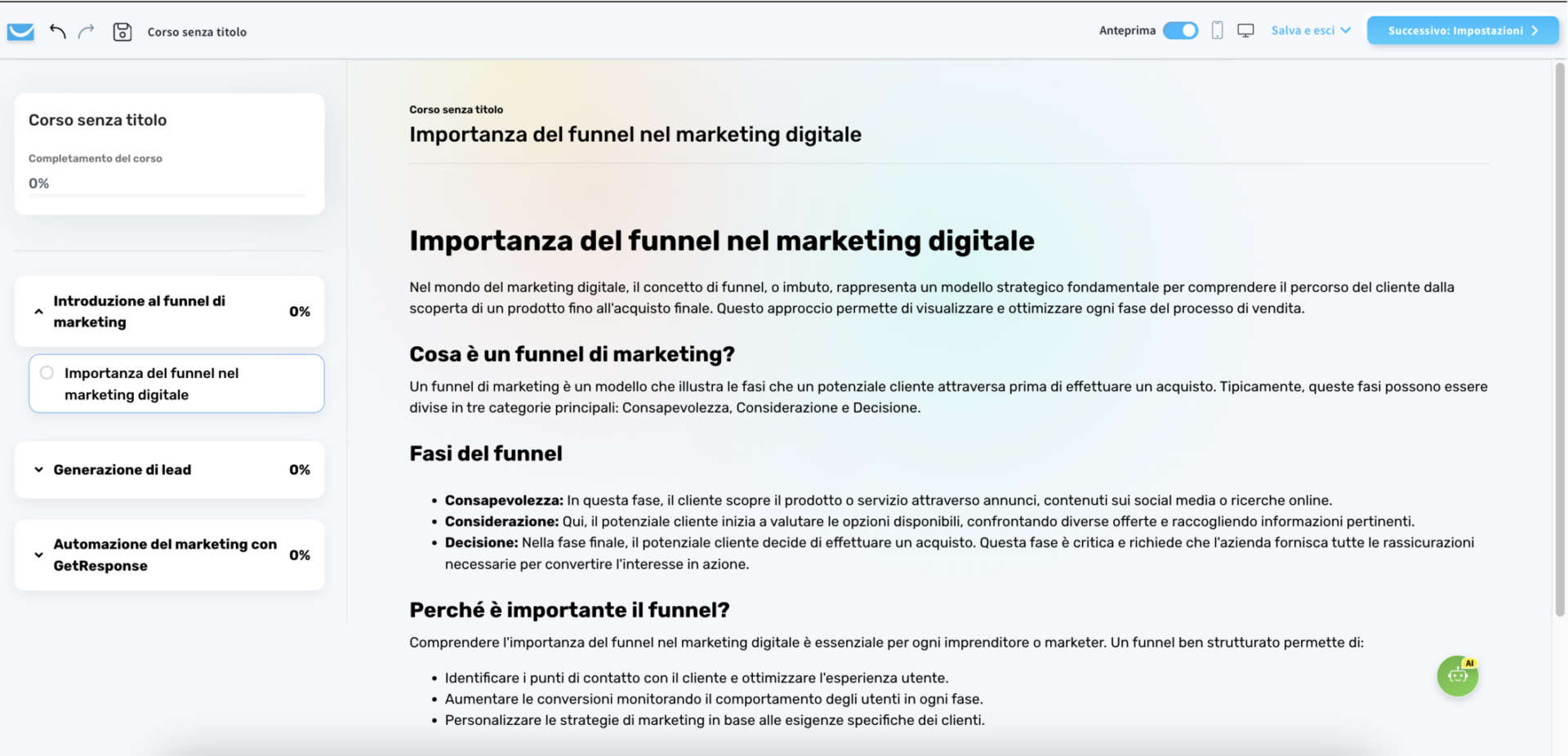“Abbiamo lavorato per risolvere due problemi cruciali. Il primo è che non tutti gli esperti di settore sono abili nella creazione di corsi, quindi abbiamo utilizzato l’intelligenza artificiale per aiutarli a sviluppare un programma strutturato in modo professionale, riducendo del 40% il tempo di lavoro. Il secondo problema è la monetizzazione. Grazie alla nostra esperienza venticinquennale nei software di marketing online, abbiamo creato un sistema che accelera la conversione in modo automatico, senza richiedere l’intervento diretto dell’utente, offrendo non solo uno strumento, ma un vero supporto nel processo di promozione e vendita”, dichiara Daniel Brzeziński, Vice President e Head of Product Strategy di GetResponse