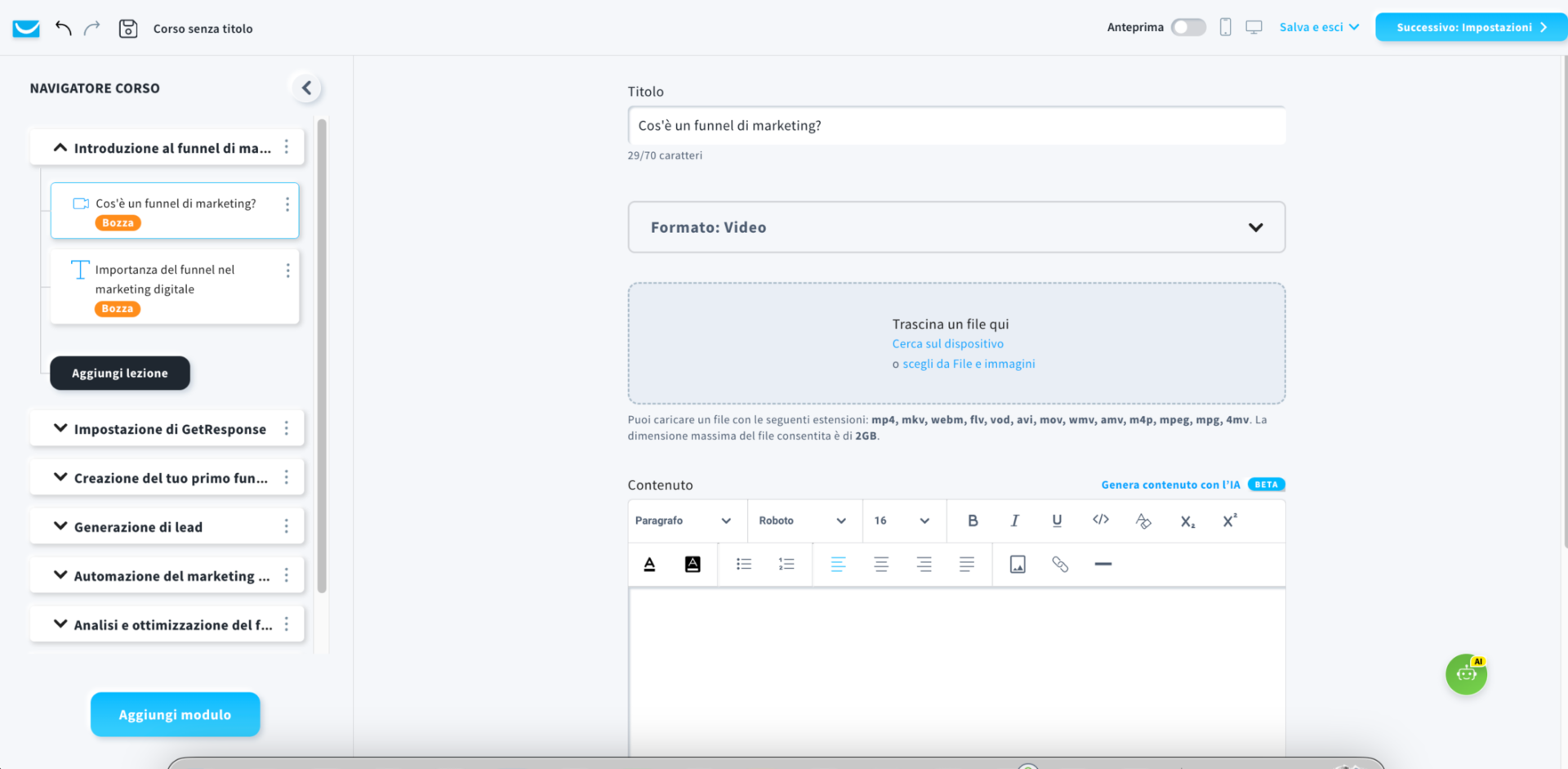 Con l’obiettivo di colmare il divario tra creazione dei contenuti e monetizzazione, Content Monetization include un editor dei corsi potenziato dall’AI, webinar, newsletter a pagamento, landing page/siti web e email marketing automation.