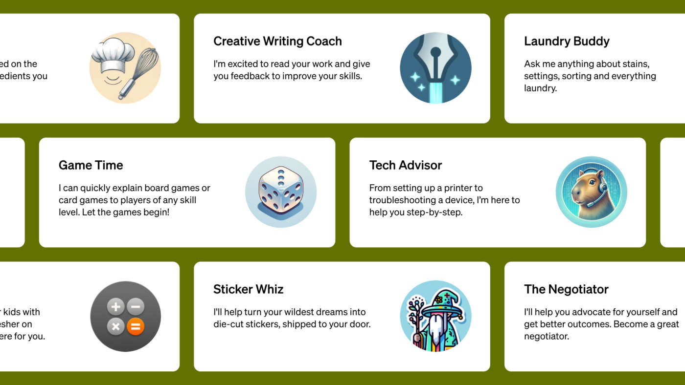 Da quando è stato lanciato ChatGPT, sottolinea OpenAI, le persone hanno chiesto di poterlo personalizzare per adattarlo alle specifiche modalità di utilizzo. A luglio l’azienda ha lanciato le Custom Instructions, che consentono di impostare alcune preferenze, ma le richieste di maggiore controllo continuavano ad arrivare. Molti power user mantengono un elenco di prompt e set di istruzioni accuratamente realizzati, copiandoli manualmente in ChatGPT. Ora i GPT fanno tutto questo al posto dell’utente.