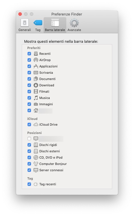 iCloud Drive è solitamente presente nella Barra laterale delle finestre del Finder. Se non lo è, dal Finder seleziona il comando da menu Finder > Preferenze e, nella finestra Preferenze Finder, attiva anche iCloud Drive tra gli elementi da mostrare nella barra laterale.