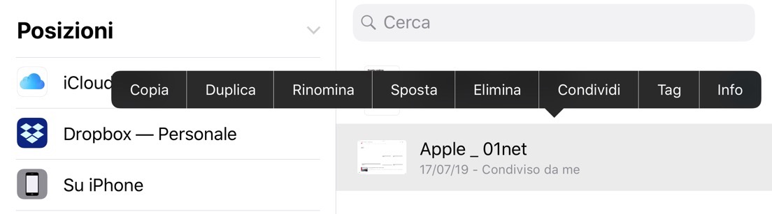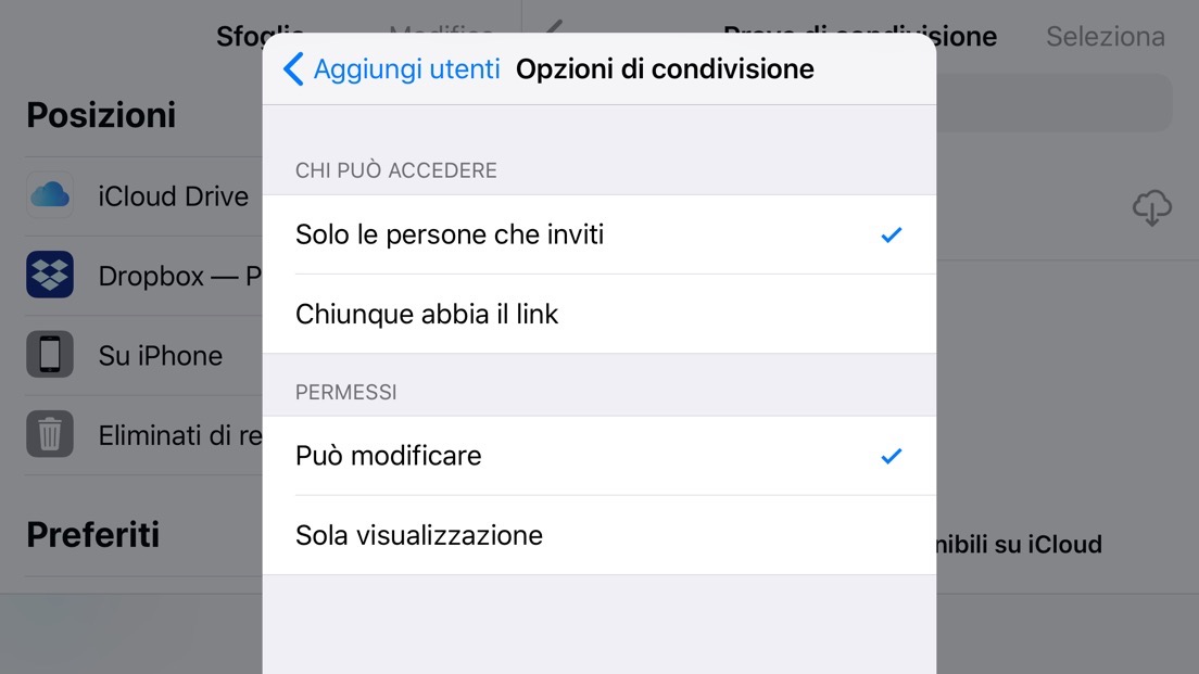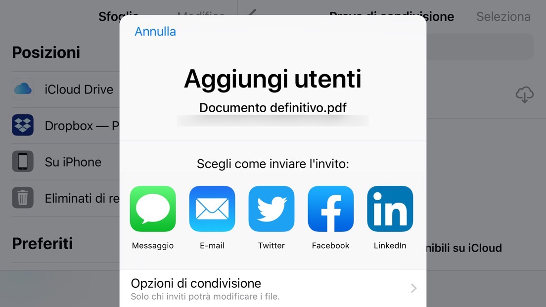 Condivisione file di iCloud Drive su iPhone