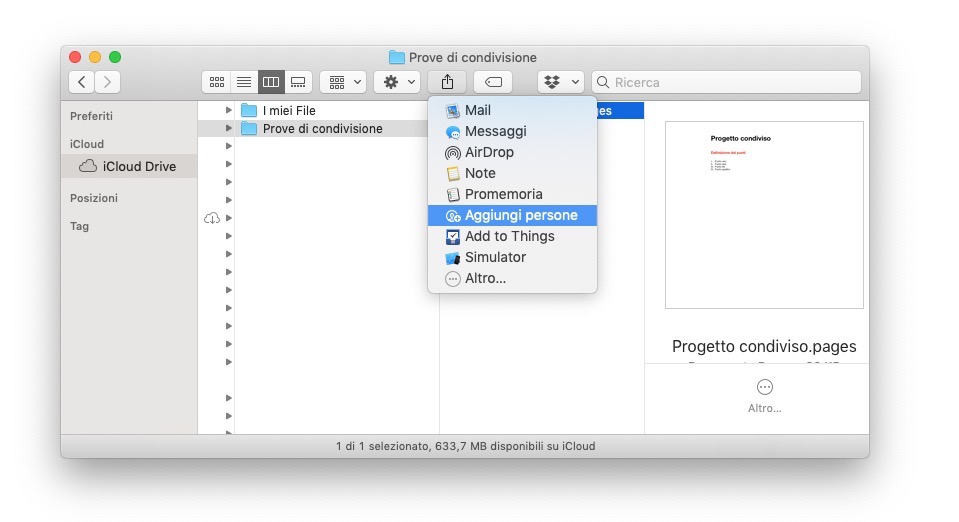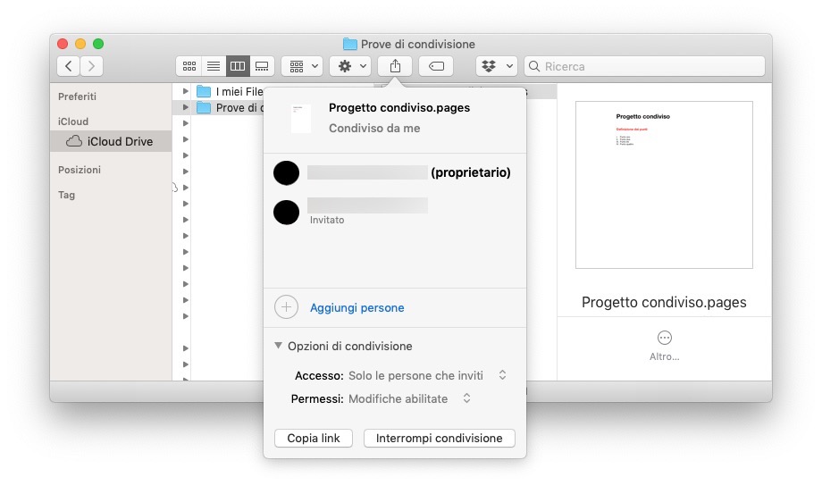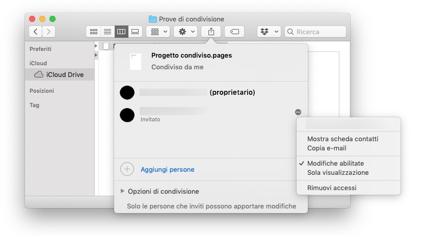 Qui, innanzitutto il Finder mostra con quali persone hai condiviso il documento. Fai clic su Aggiungi persone per ripetere la procedura e inviare l’invito ad altre persone.