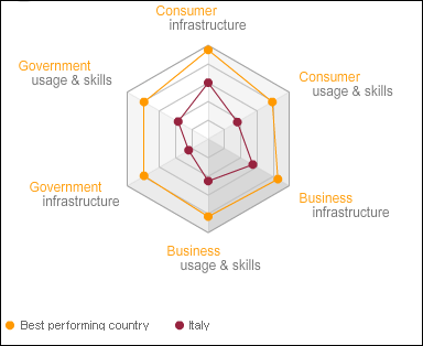 Fra i punti di forza dell’Italia si segnalano invece l’elevato numero di utenti di telefonia mobile (89,5%) e i servizi di gestione dei dati mobili a livello aziendale. Il rapporto poi sottolinea come l’Italia mostri ottimi risultati nell’utilizzo dei servizi di e-governance: un dato certo sorprendente, vista la bassa performance di tutti gli altri parametri legati all’uso di Internet.