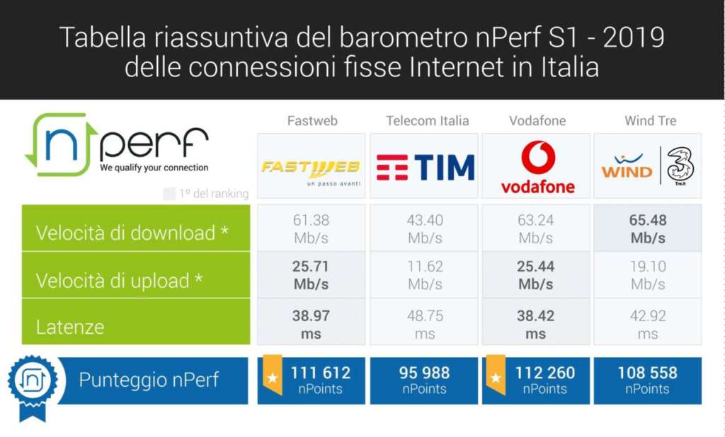 Il barometro di nPerf sulle connessioni fisse Internet in Italia nel primo semestre 2019 dice che Wind vince nel download e Vodafone e Fastweb nell’upload.