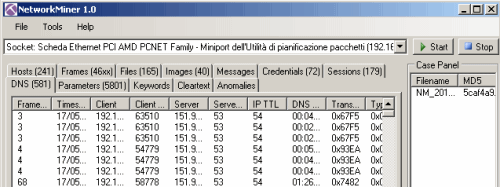 Il software è in grado di catturare i socket raw ricorrendo al modulo integrato oppure è possibile interfacciare NetworkMiner con le ben note librerie WinPcap.
