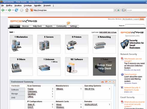Con il software gratuito SpiceWorks è possibile fare l’inventario di una rete locale, monitorando le periferiche in uso e le patch installate.
