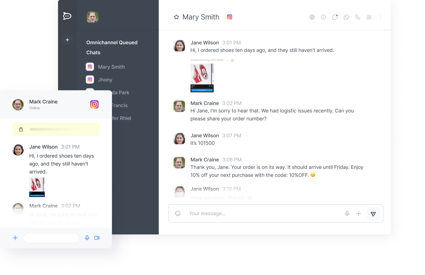 Una tale integrazione consente di aumentare la produttività del team e assicurarsi di rispondere a tutti i messaggi dei clienti. Inoltre, permette di avviare conversazioni personalizzate, scambiando anche file e immagini informative, messaggi vocali, GIF.